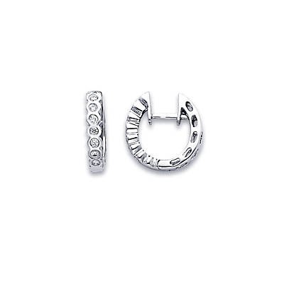 14k White Gold Round Diamond Hoop Huggie Earrings .15ct (G Color, SI1 Clarity)
