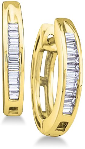 !±8±Hoop Huggie Baguette Diamond Earrings 10k Yellow Gold - 12mm Height * 2mm Width (.15 cttw, H Color, I1 Clarity)