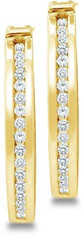 10k Yellow Gold Round Channel Set Diamond Classic Hoop Huggie Earrings - 11mm Height * 2mm Width (.14 cttw, H Color, I1 Clarity)